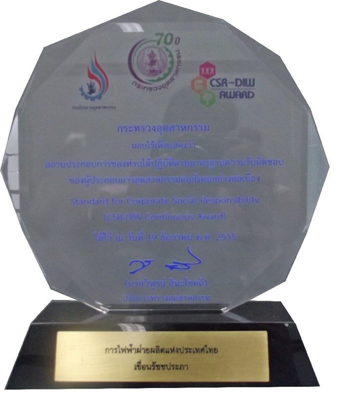 • CSR-DIW Contnuous Award ปี 2555