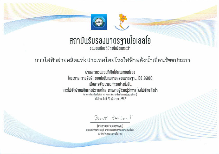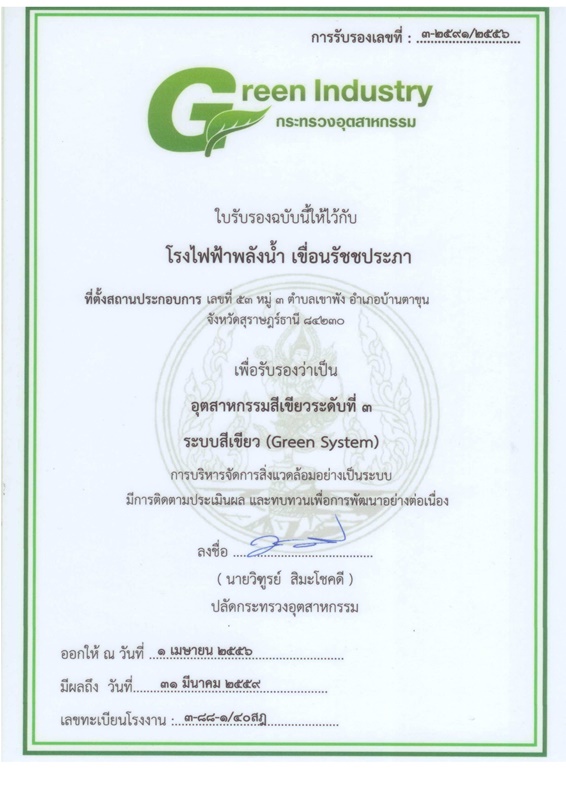 ผู้รับผิดชอบ : นายสุบิน เนตรสว่าง ผู้อำนวยการเขื่อนรัชชประภา