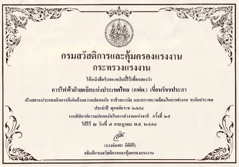สถานประกอบการดีเด่นด้านความปลอดภัยและสภาพแวดล้อมในการทำงาน ระดับประเทศ ติดต่อกันเป็นปีที่ 6